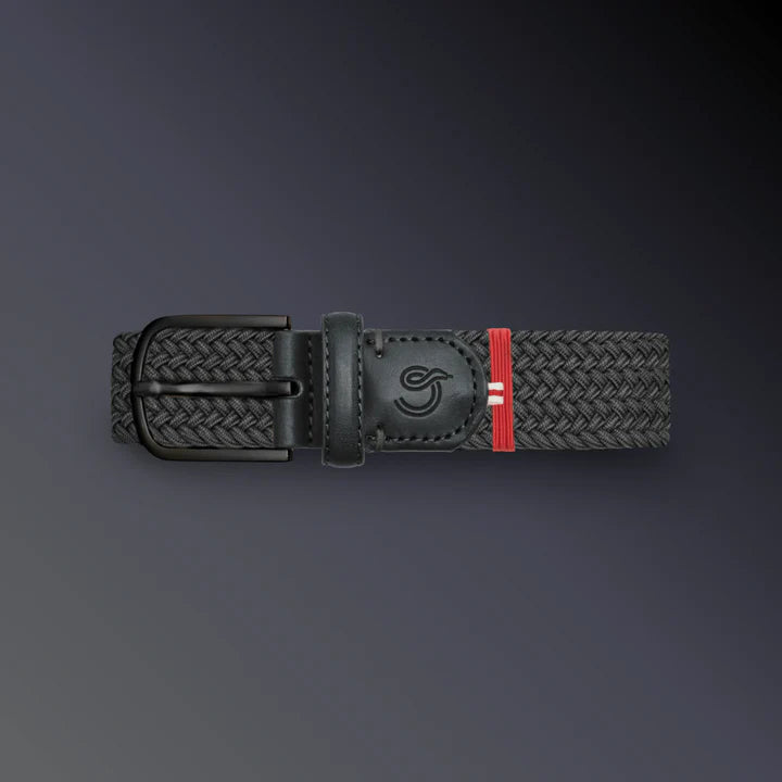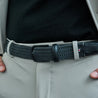 The Broadway La Boucle belt, braided in the colours dark grey & black. Nickle-free buckle with black DLC coating for optimal elegance and durability.