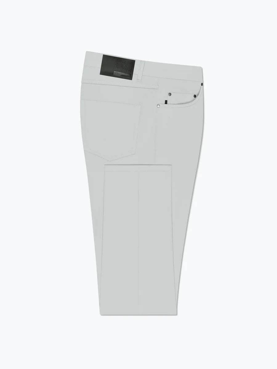 The Five-pocket pants find a new contemporary edge in the extreme lightness of cool, stretchy Surflex®. The fabric's sophisticated matte finish eliminates sheerness in light and medium shades, while the regular fit is accentuated by the comfort of the breathable, wrinkle-free, easy-care fabric with a pleasantly soft touch. American-style pockets and a watch pocket with dark metal studs define the front, which is closed by a fine horn placket discreetly concealed by the flap. The traditional back patch pockets are tastefully accented with black jacron, the iconic touch that completes a design perfect for creating a variety of casual looks for the warmer seasons.