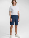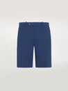These mid-length bermuda shorts are crafted in the exclusive SURFLEX® stretch fabric, which provides coolness and comfort even on the hottest days. Contemporary construction is enhanced by classically inspired details such as the loops belt adjusted by a horn button, the flap concealing the metal zipper, and the French-style side pockets. Back welt pockets add a note of classic elegance to the super-matte effect typical of gabardines. The wide color palette allows for unlimited combination possibilities to a summer passepartout style as an alternative to full length chinos.