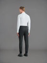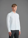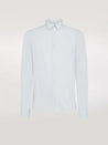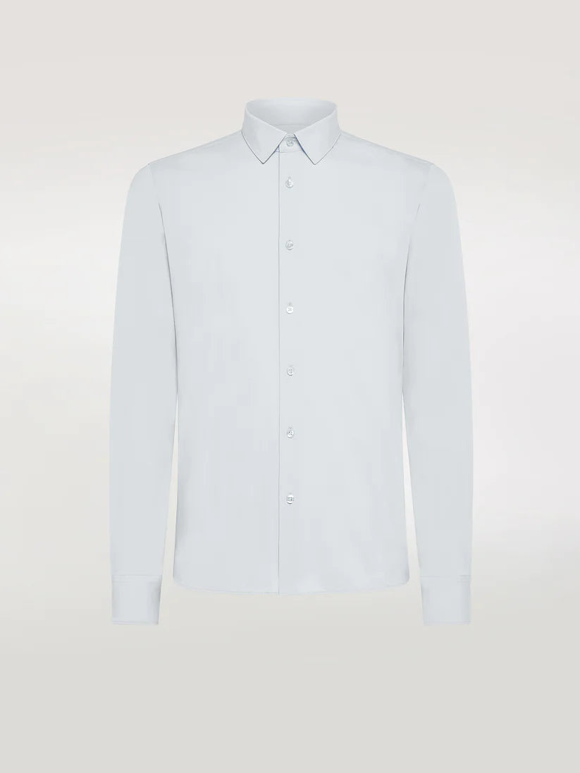 The creation is completed by the open collar and the mother-of-pearl French placket on the front, and on the cuffs. A men's wardrobe staple that can be combined with the other tailored garments from the collection.