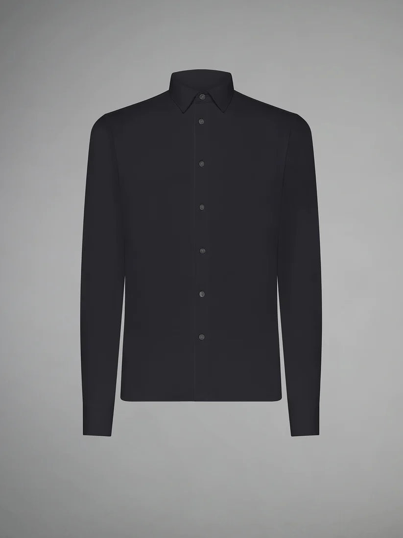 The creation is completed by the open collar and the mother-of-pearl French placket on the front, and on the cuffs. A men's wardrobe staple that can be combined with the other tailored garments from the collection.