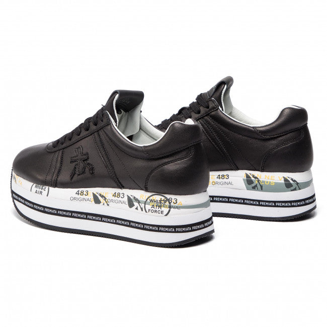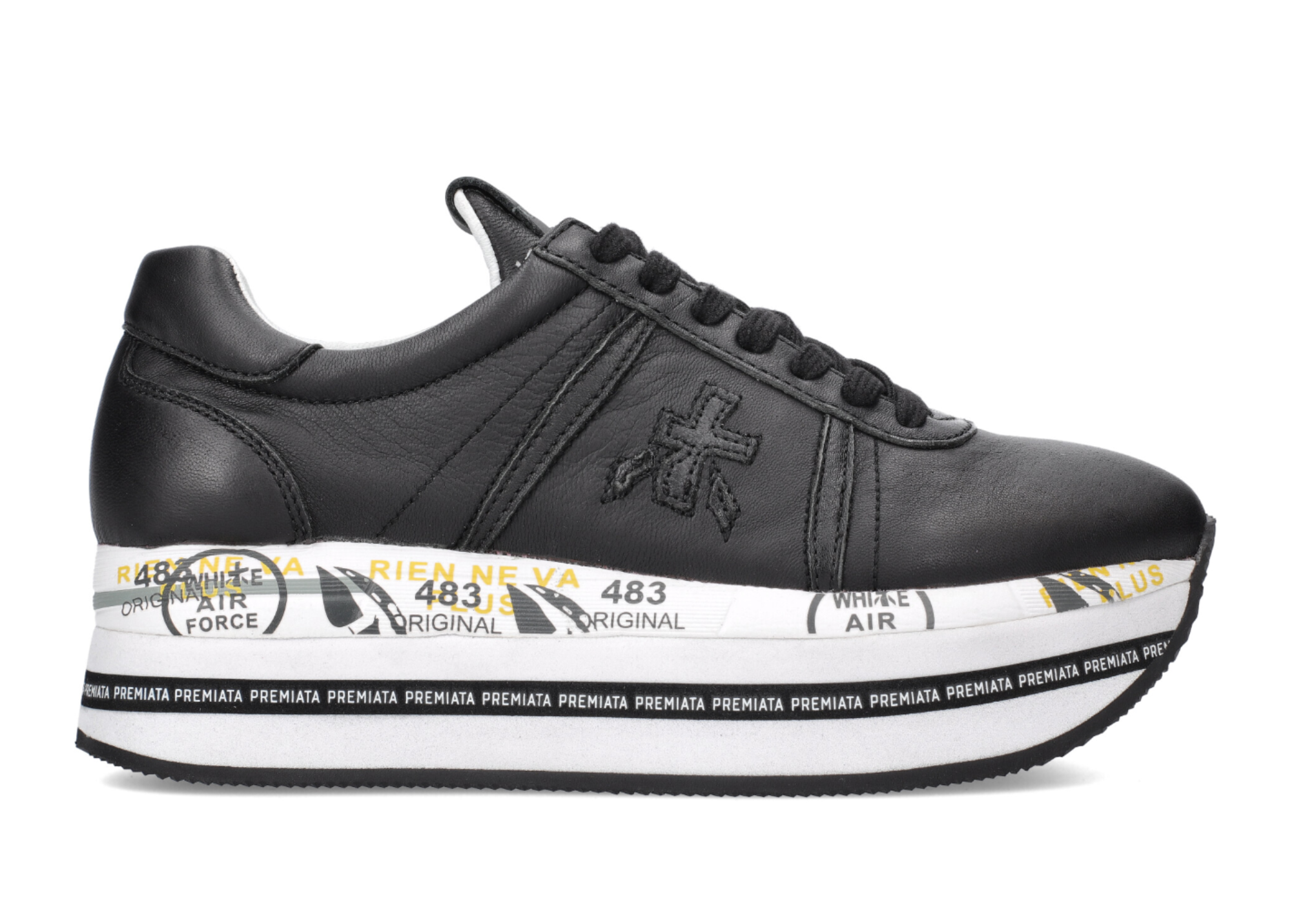 Sneakers Premiata in nylon and leather, colour black and white, Model: BETH running style with laces with decorative stitching with stitchings with logo with decoration, high quality synthetic sole.