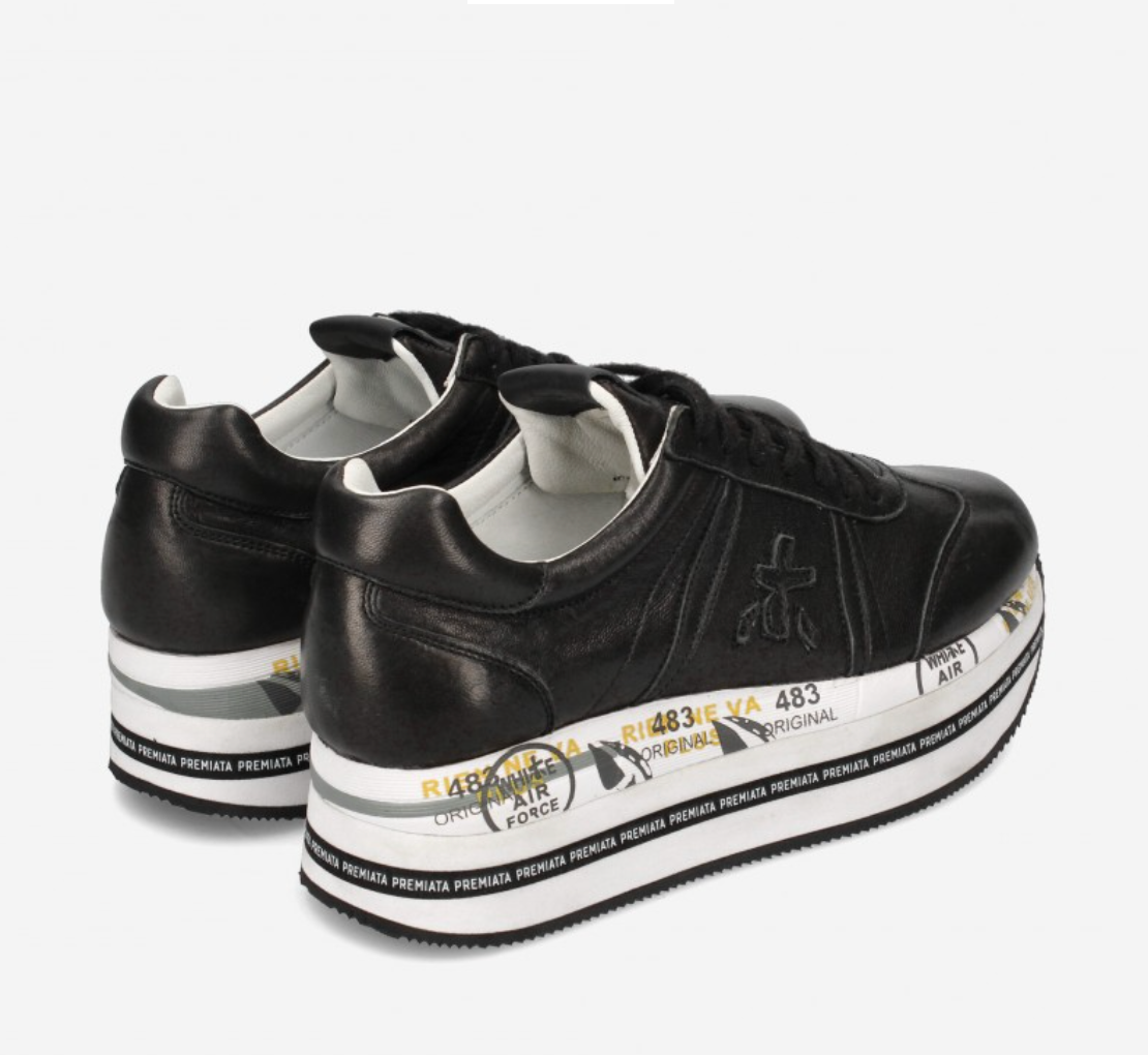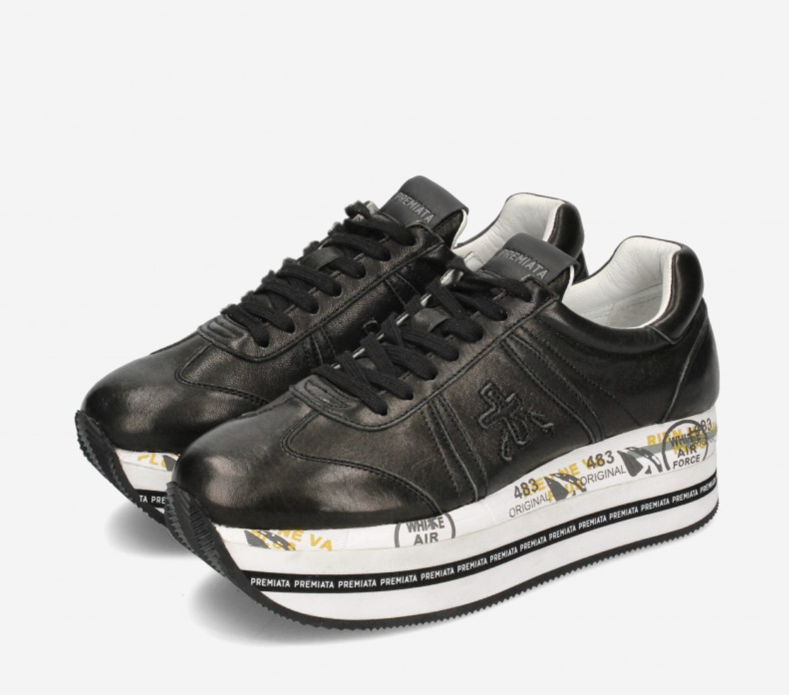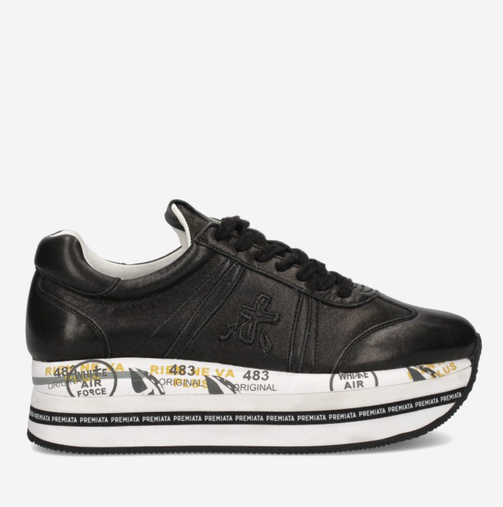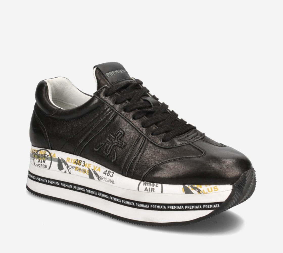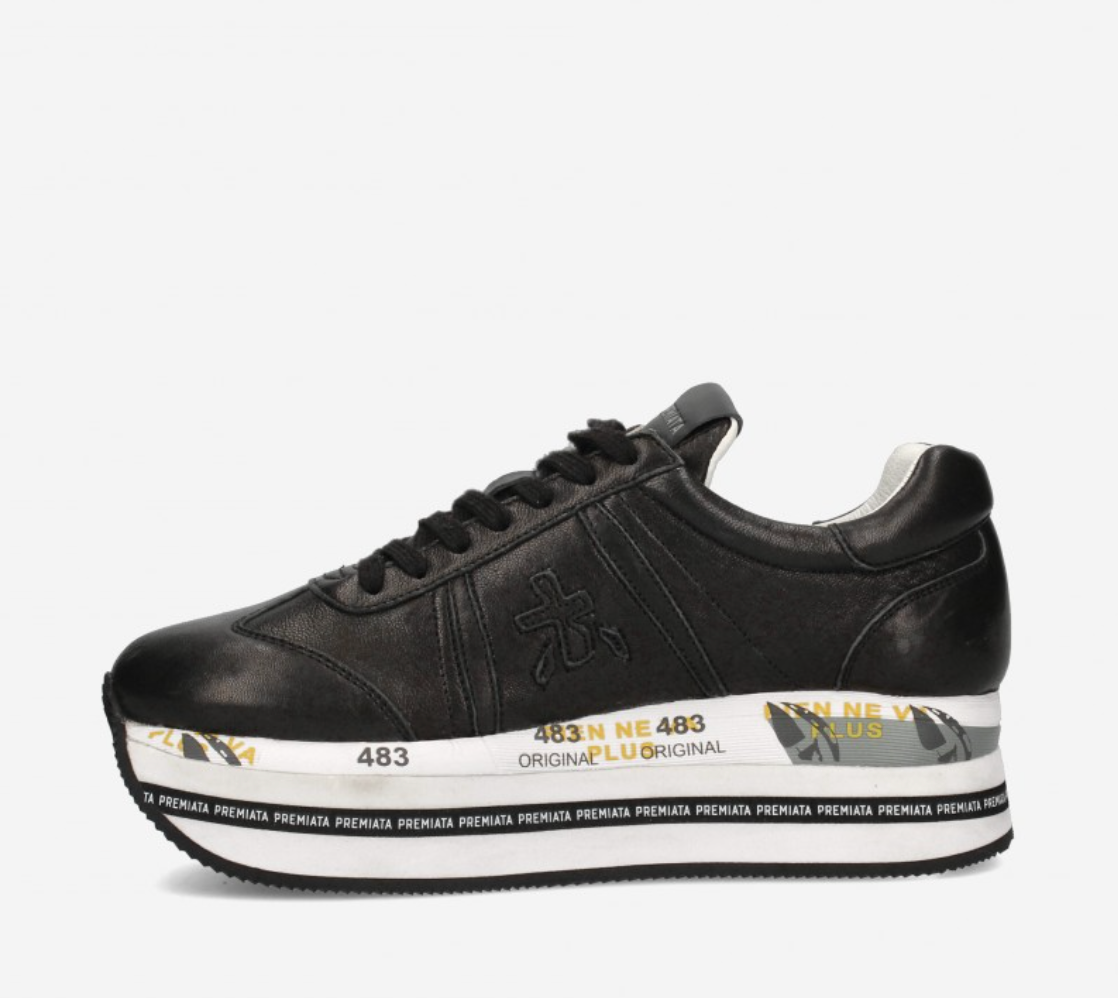 Sneakers Premiata in nylon and leather, colour black and white, Model: BETH running style with laces with decorative stitching with stitchings with logo with decoration, high quality synthetic sole.