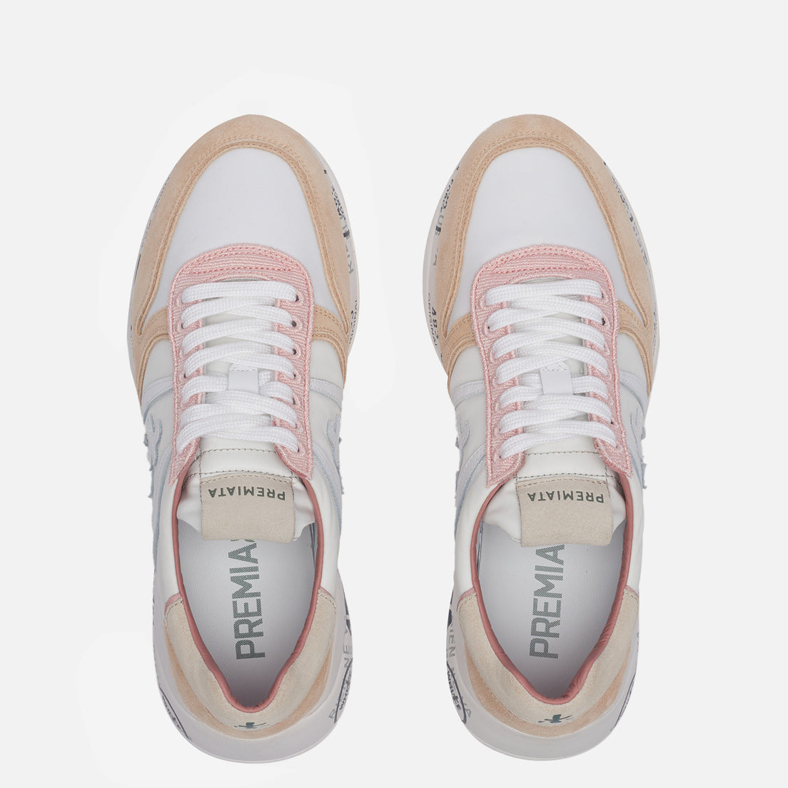 Layla sneakers, a marriage of technical fabrics and high quality leathers. The look is enriched by a branding logo and a rubber sole. Complete a bold look and get the unique comfort.