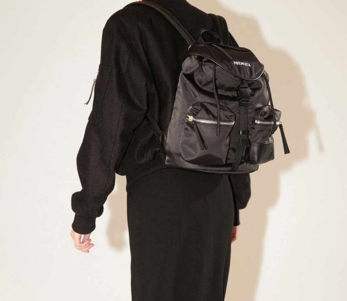 A compact model in top-quality nylon gabardine, with padded back and shoulder straps with inner EVA core for greater comfort. Nickel-finished 8 mm zippers on the low pockets and calfskin crossbody strap stamped with the iconic Premiata brand motifs.