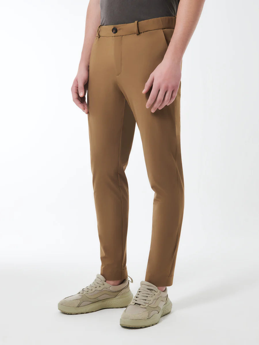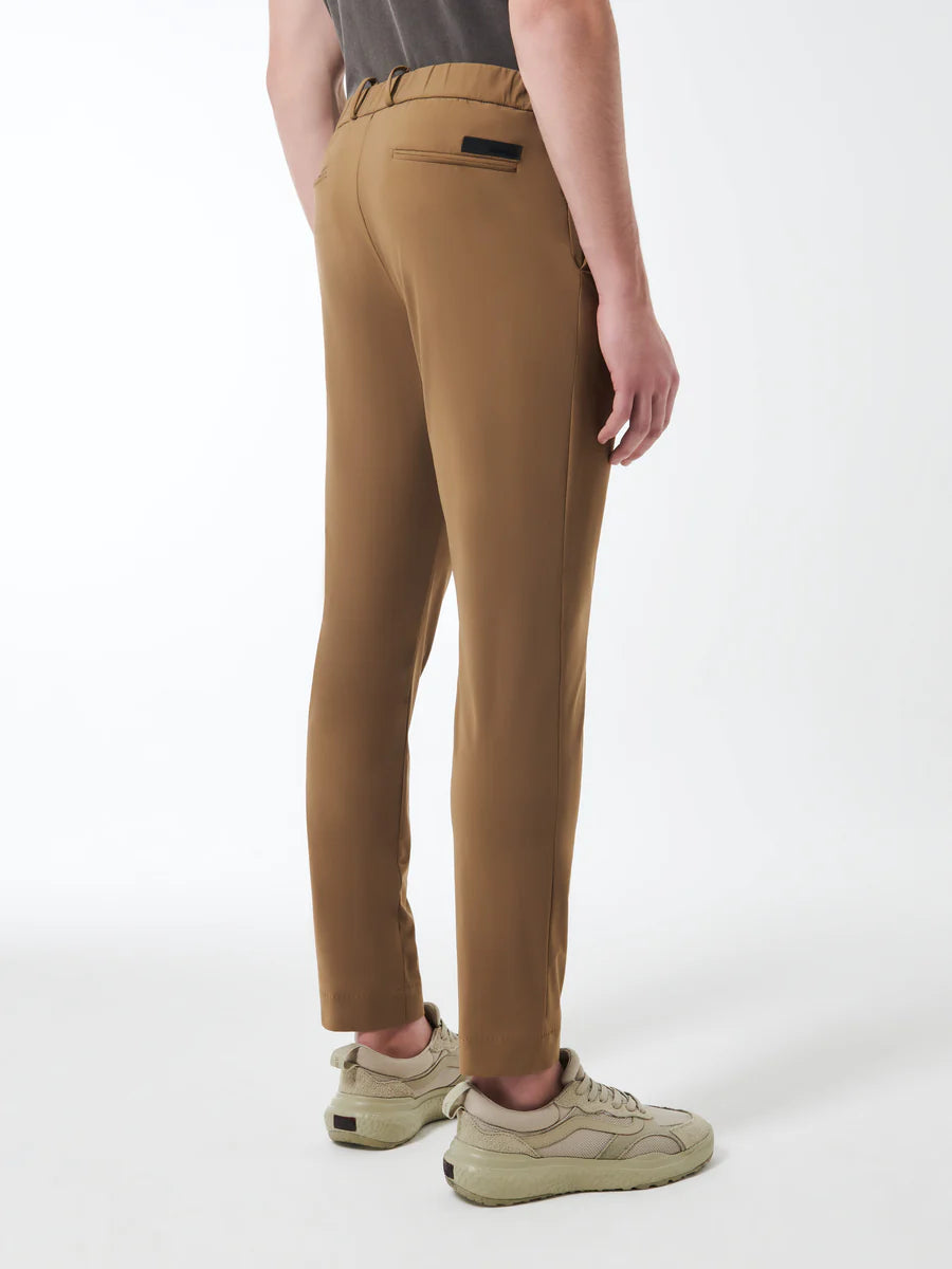This contemporary urban style features a comfortable fit, enhanced by the belt loop waistband, made adjustable by the elastic drawstring with rubberized finials. The interior is tastefully accented by the band printed in the exclusive tone-on-tone Razzle Dazzle monogram. The front is closed by a horn button and zipper, which is discreetly concealed by a flap, with French style pockets at the side. These are complemented by welt back pockets, featuring the black micro-injected logo on the right. Made from exclusive Surflex® stretch fabric, with a super-matte look and smooth feel, these mid-rise, regular fit chinos are cool, lightweight and breathable. Their wrinkle-free, no-iron properties make them ideal for dressing up a casual summertime look with style and versatility, as well as being a reliable travel companion.