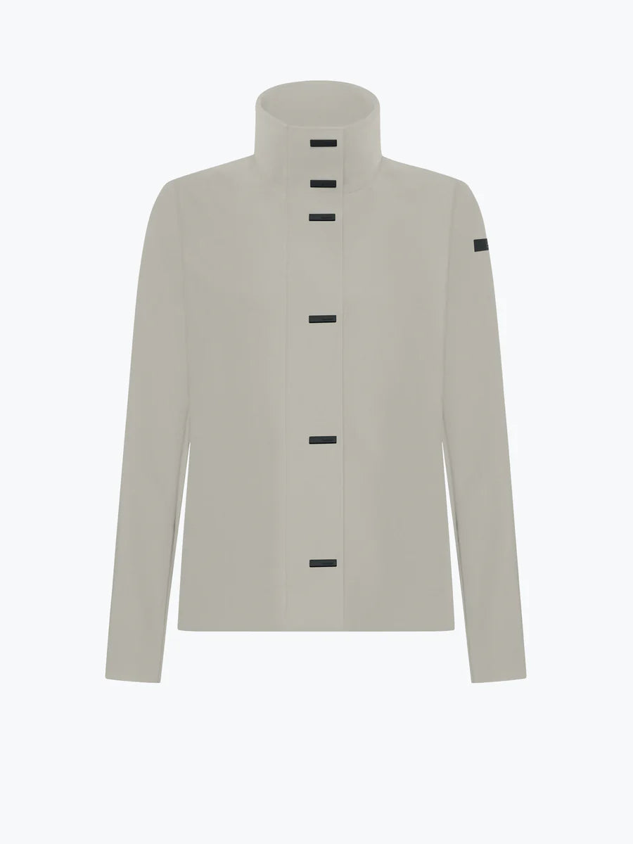 The Surflex K Wom Jkt is a short, functional jacket with clean lines, and serves as an excellent choice for protection from cool evening breezes and summer storms. Made from the exclusive SURFLEX® stretch fabric, with its super-matte look and breathable, soft touch qualities, this straight-cut jacket is a valuable addition to your outerwear collection, helping to create everyday looks in style. Details seen in the prominent black rectangular buttons and high collar give this model a contemporary visual appeal without neglecting the functionality and practicality of the garment. This makes the jacket a versatile and modern addition to any wardrobe.