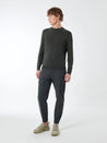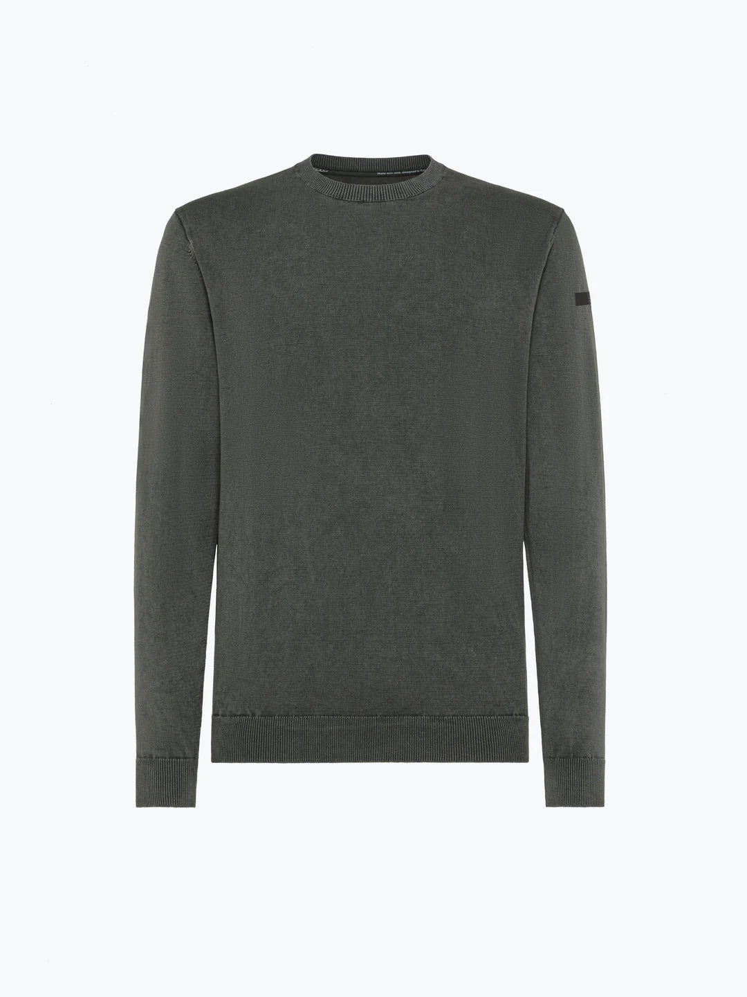 A timeless piece for mid-season, this long-sleeve crewneck pullover is crafted from soft and consistent cotton yarn in dark tones, with a subtle delavé effect. The comfort of the relaxed fit is refined by the collar, cuffs and hem trimmed in stretch ribbing. The style is lightweight and versatile, adding a distinctive touch to any casual or informal outfit. The signature orange welt on the bottom hem and the black micro-injected logo on the left sleeve make the creation unique and unmistakable.