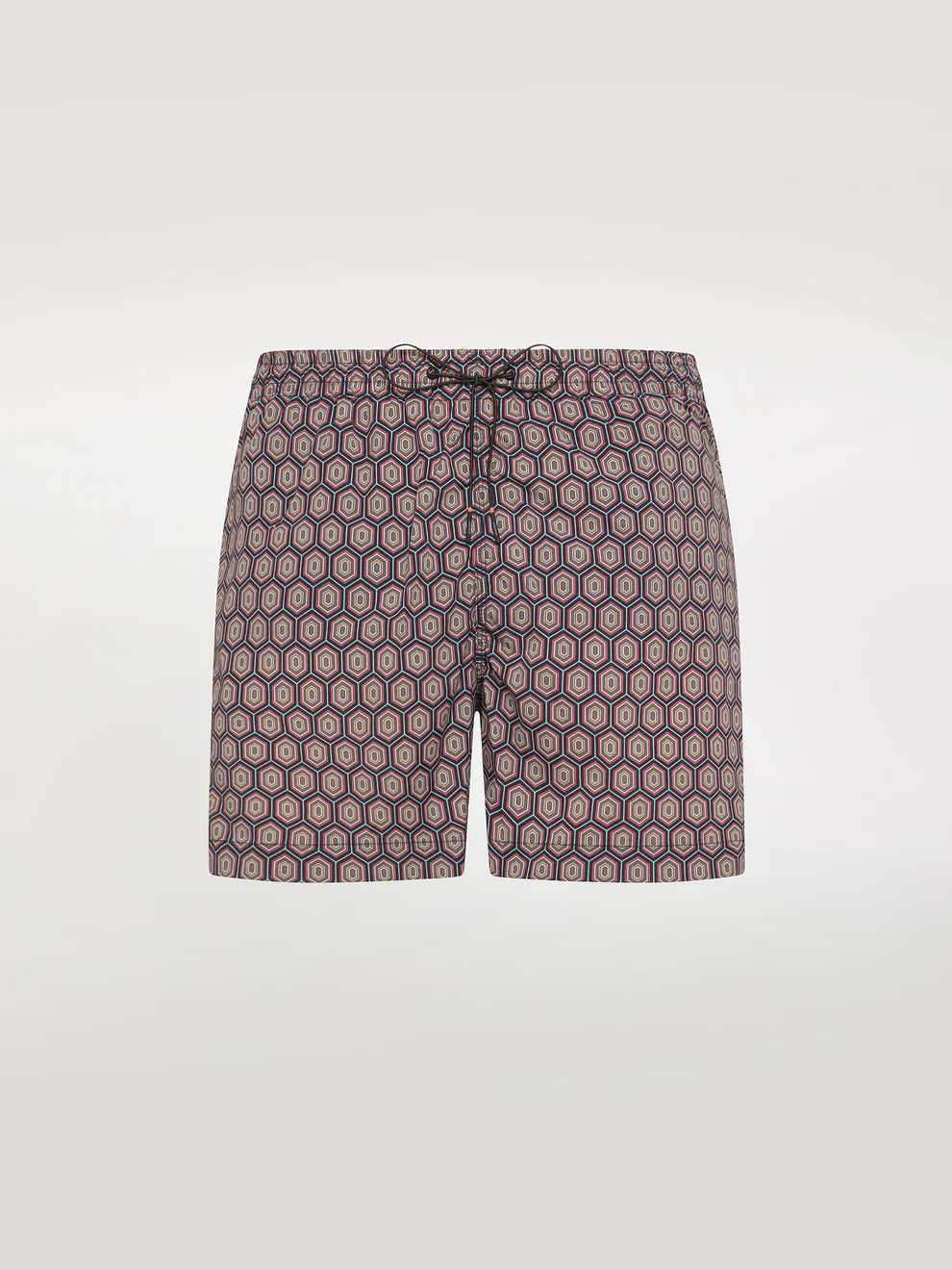 The exclusive all over print of the exclusive Uucciucci geometric pattern recalls the glamour of 1960s Côte d'Azur summers in lending a distinctive note to this mid-length beach shorts. The design is made of lightweight, breathable and quick-drying stretch fabric. It features drawstring waist adjustment with rubberized ends and fluo orange dot. Side French pockets, plus a back pocket closed by the invisible zipper. The signature black micro-injected logo completes the creation with an iconic note.
