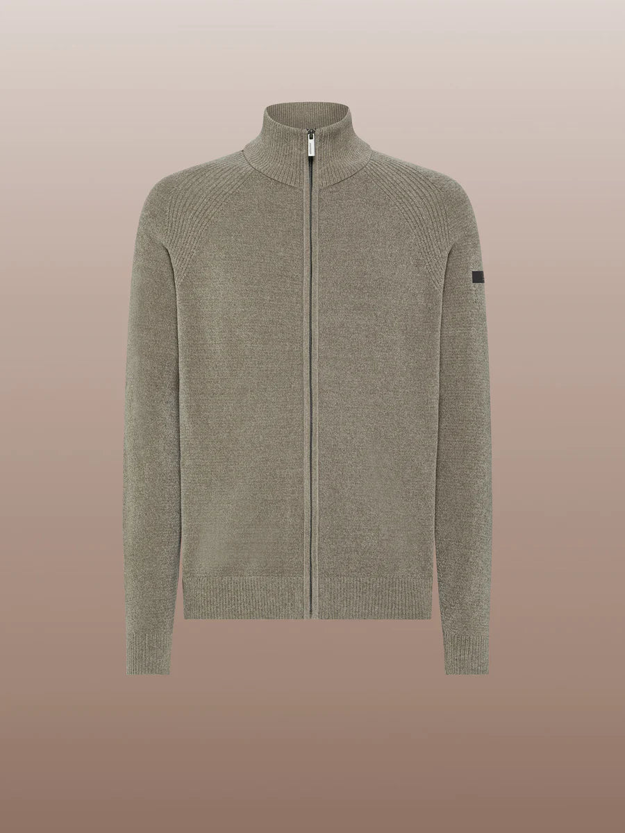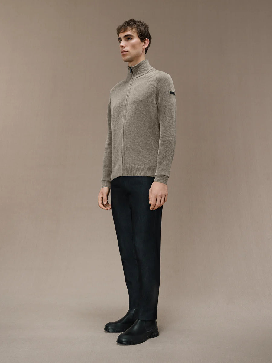 Made of the finest knitted chenille, stretchy and with a velvety soft touch, this regular-fit turtleneck sweater with full front zip is a mid-season piece absolutely comfy for everyday wear. The clean design is enlivened by the characteristic saddle cut of the long sleeves, which emphasizes wearing comfort with ample freedom of movement. The high collar, cuffs and hem are refined by the ribbed knitting. Velvet Full Zip Knit is available in a wide solid color palette and effortlessly completes a casual look over a casual chino, or five pocket trousers.