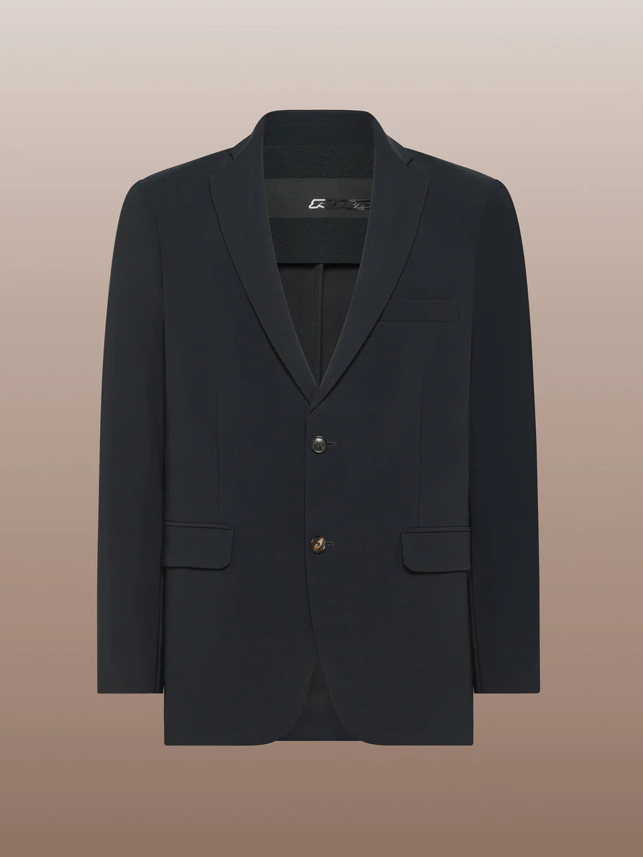An essential piece in the men's winter wardrobe, available in a sober seasonal color palette. The formal single-breasted blazer acquires a new contemporary edge in the essential cut of the exclusive SURFLEX® fabric. Its super matte look, comfort, stretch and wrinkle-free properties make it a suitable garment for office days and business travel. The regular fit is streamlined by the narrow lapels, with horn placket, breast and side flap pockets. The central back slit allows freedom of movement. The taffeta inner is embellished by a breast pocket with an iconic orange double welt. The blazer can be teamed with an Oxford shirt and tailored chino trousers for a dynamic and professional outfit.