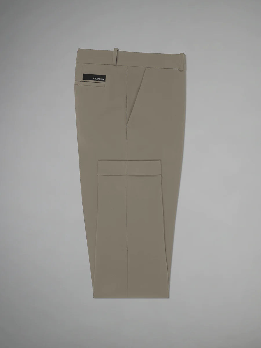 A winter chino pant of essential elegance, available in black or midnight blue. The super opaque effect of the SURFLEX® stretch fabric, smooth and soft to the touch, wrinkle resistant and non-iron, is accompanied by the comfort of the regular fit. The model presents a belt with belt loops, front closure with hidden zip and waist adjustment with double horn button, side French pockets and turned-up bottom. The black micro-injected logo embellishes the back welt pockets. The trousers are particularly suitable for creating a formal and semi-formal look, both for the professional day and for the following evening.