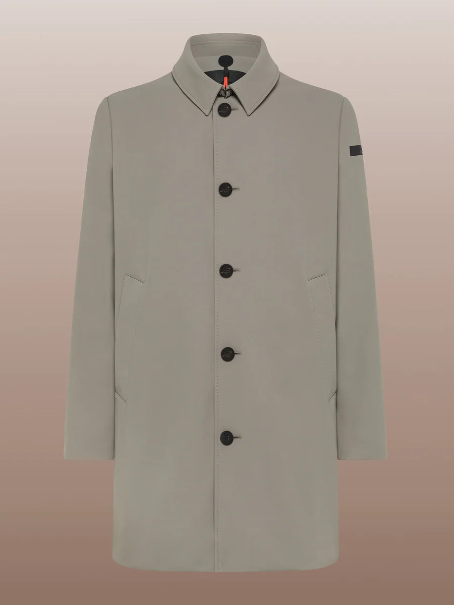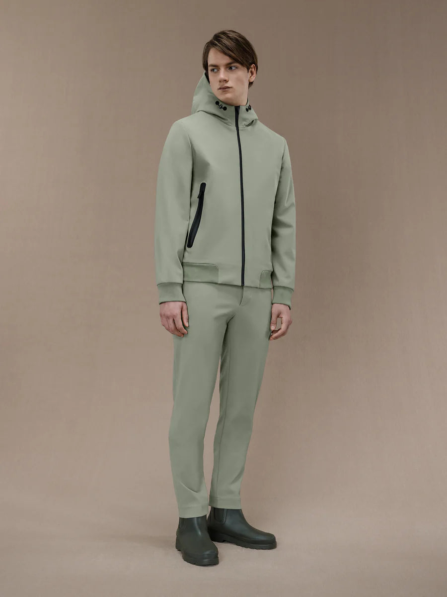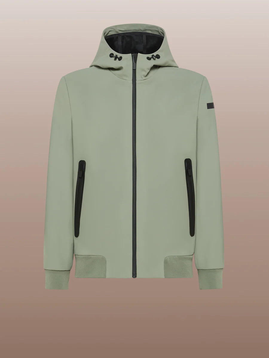 The design of this mid-season jacket brings the creativity of a dynamic street look to everyday life. The super matt look of the exclusive SURFLEX® highlights its essential style. The membrane Stratofabric#3 construction and the selective application of thermo-taping make the Winter Thermo Hood Jkt comfy, breathable and weather resistant. The wraparound hood adjusted with an elastic drawstring protects the head, whilst the magnetic zipper fastens the front, joined by thermo-taped zipper pockets. The inner lining in warm velvet is enlivened by a vertical pocket with invisible zip and double orange thread, featuring the iconic heart tag 'Made with love, designed in Tuscany'. The black micro-injected logo on the left sleeve adds a further signature mark to a tireless piece.